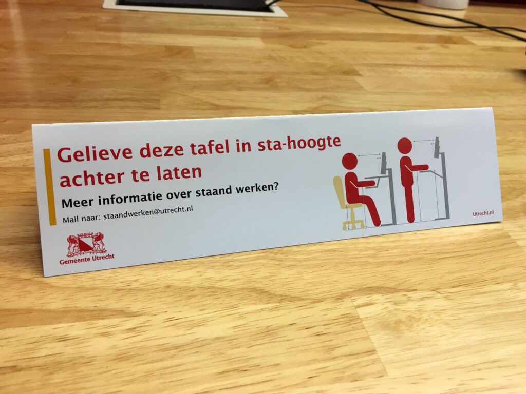 Daarom bedacht ik een eenvoudige ‘nudge’. Deze tafels staan namelijk standaard op ‘zit-stand’, waarom zouden we dat niet standaard op ‘sta-stand’ zetten? Ik deelde dit idee met Tina Venema, onderzoeker aan de Universiteit Utrecht, en zij deed er uiteindelijk onderzoek naar.