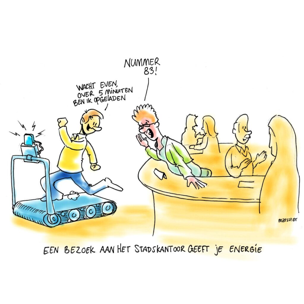 Om het wachten bij de publieksbalie te ‘verzachten’ hebben we getest met een fiets die je telefoon op kan laden. In de praktijk werd het niet veel gebruikt. Wel zag het er leuk uit.